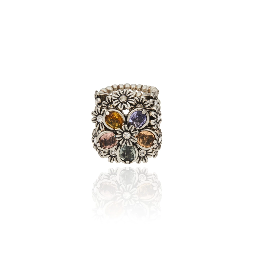 Com um olhar romântico e refinado, as peças revelam a união de pedras naturais como ágata negra, pedra do sol e cristais, envoltas em formas orgânicas, florais e suaves. Motivos delicados como pétalas e curvas sutis traduzem a essência de uma mulher conectada à sua sensibilidade e à beleza dos detalhes.