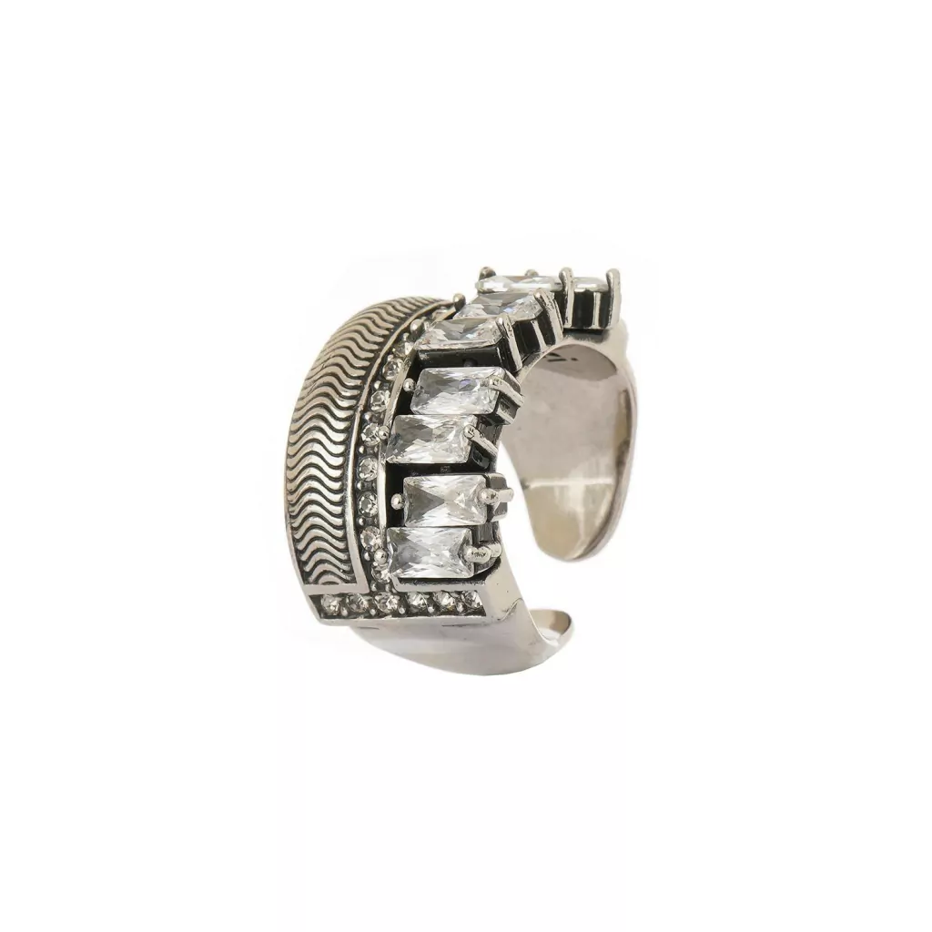 O Anel Zircônias Enchnat foi produzido artesanalmente, no banho prata boho, com cristais aplicados manualmente.