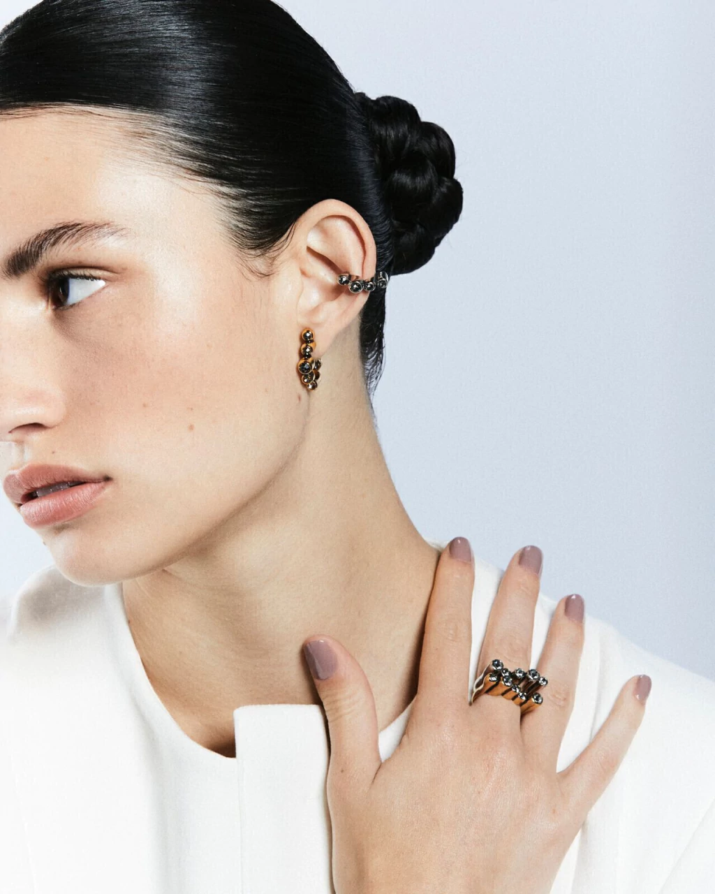 O brinco foi produzido artesanalmente, no banho ouro vintage, com cristais austríanos aplicados manualmente.