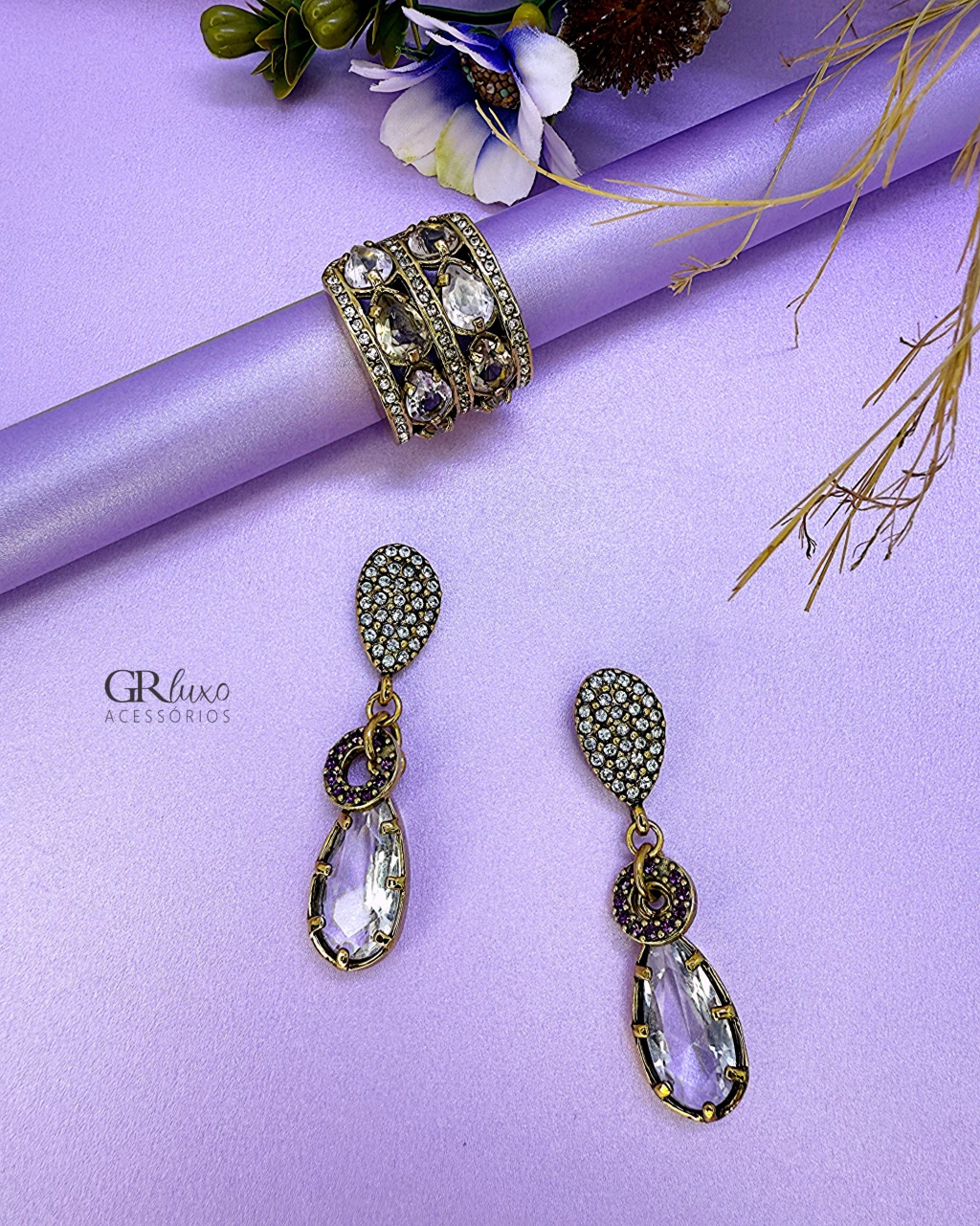 Brinco da marca Camila Klein, coleção Essencial, banho no metal ouro velho com cristais tchecos e cristais austríacos.