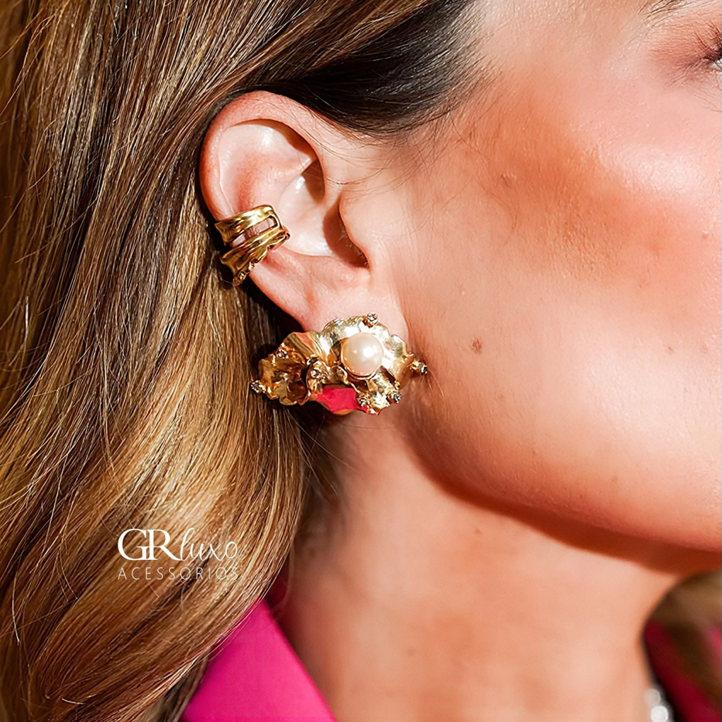 Composição: metal nobre em banho ouro vintage e pérola shell (conta de vidro com pintura com tinta feita de pérola natural)