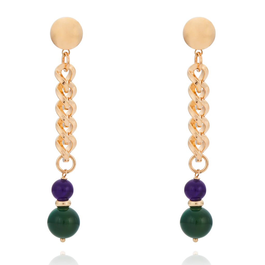 Materiais: Bronze banhado a ouro, contas de lápis-lazúli, pedras de resina, zircônia finalizado em banho ouro 18 k