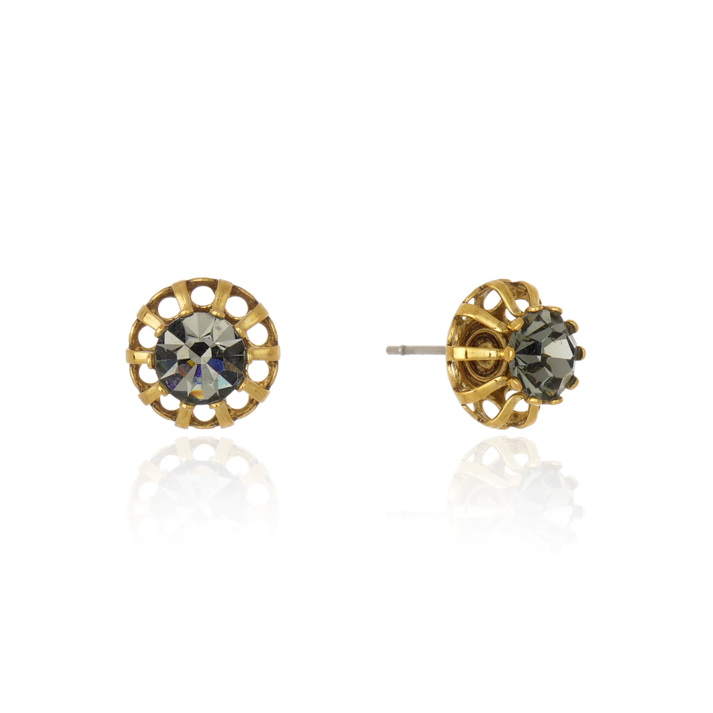 Brinco produzido de forma artesanal com cristal black diamond em metal em banho Ouro Vintage.