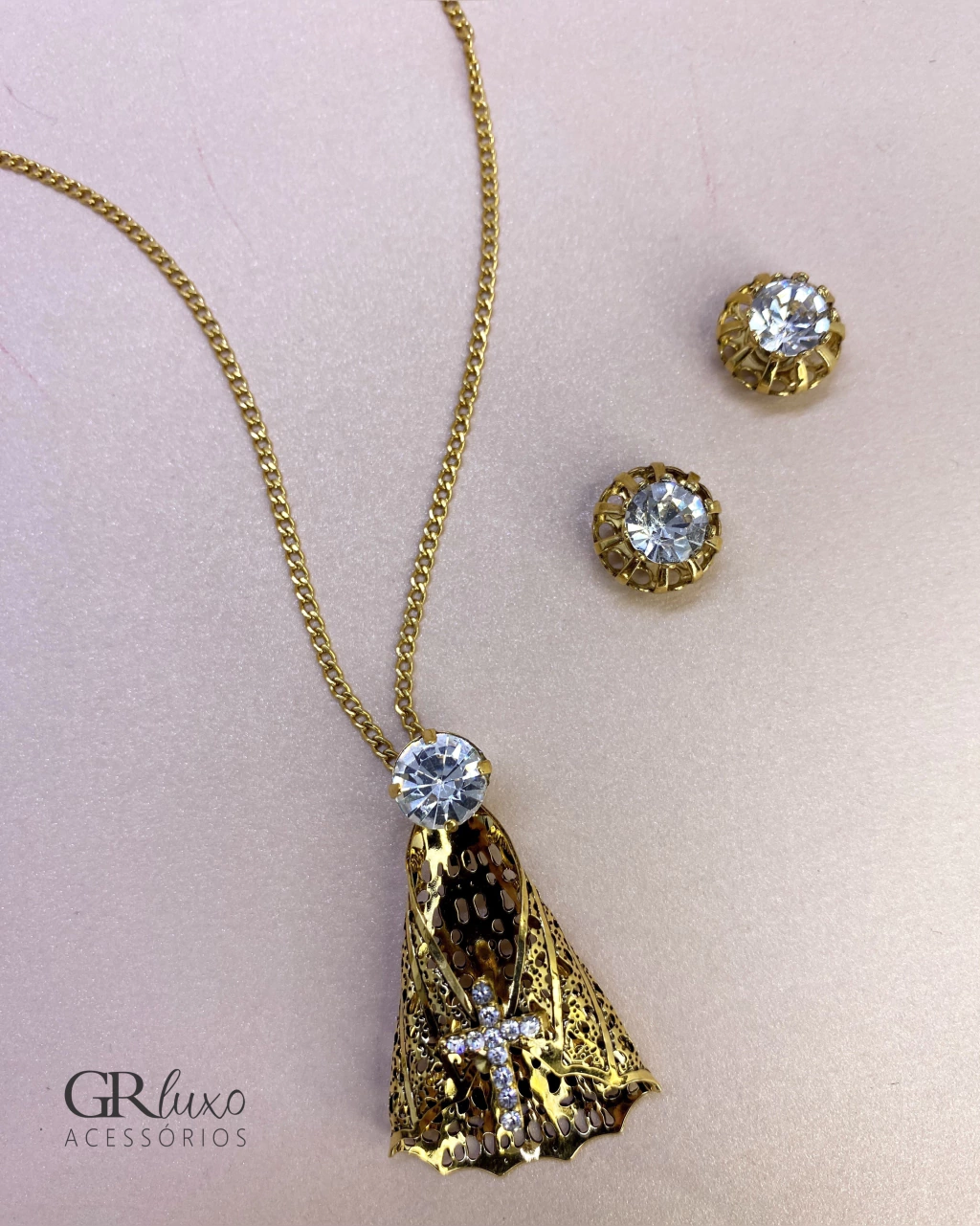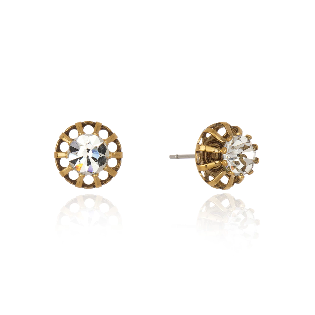 Brinco produzido de forma artesanal com cristal cor transparente e em metal em banho Ouro Vintage.