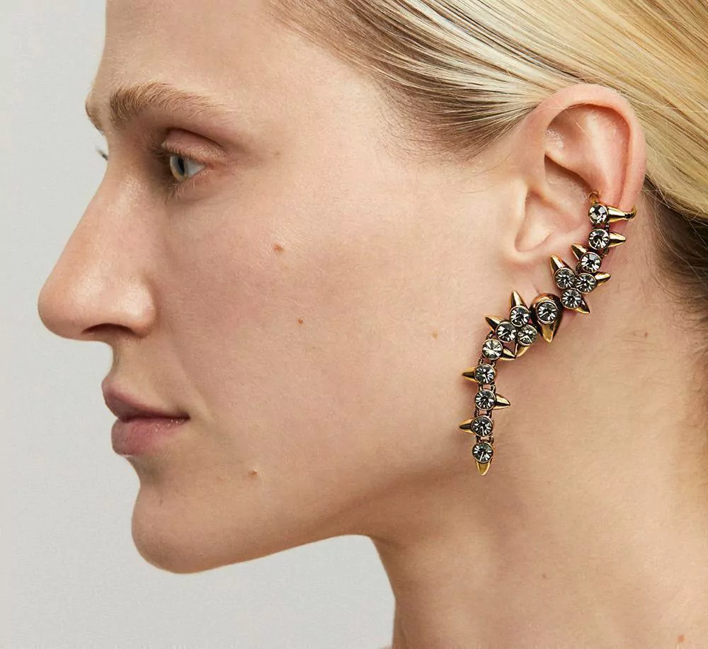 Os acessórios apresentam shapes alongados, similares ao formato das sementes que se encontram dentro dos frutos, representadas por cristais brilhosos, e uma luminescência única. O brinco Maxi Cuff Sementes foi produzido aplicando as técnicas da alta joalheria, no banho Ouro Vintage, com cristais cravejados manualmente.