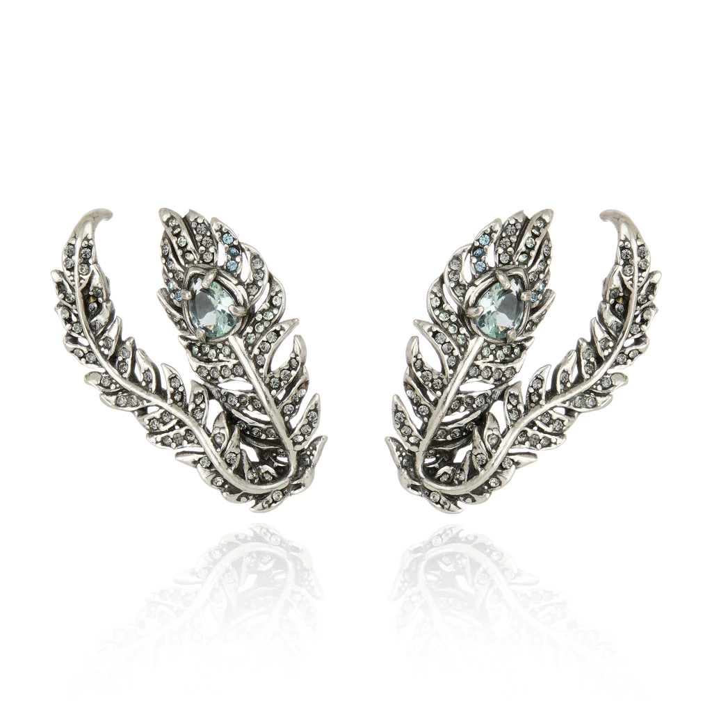Os brincos e colares, com suas formas fluídas e leves, evocam o movimento das penas ao vento, enquanto os anéis trazem uma explosão de brilho, como se cada pedra fosse uma estrela a brilhar em seu próprio céu.