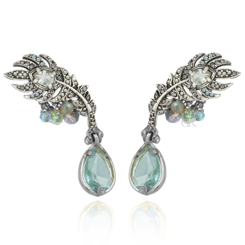 Inspiradas pela harmonia do azul profundo e do verde claro que se entrelaçam nas penas do pavão, as peças são adornadas por pedras em formatos de gota e navete, como gotas de orvalho que reluzem ao sol. A delicadeza das zircônias e a suavidade das pedras preciosas tornam cada joia uma verdadeira obra de arte, que carrega em si a beleza e o mistério da natureza.