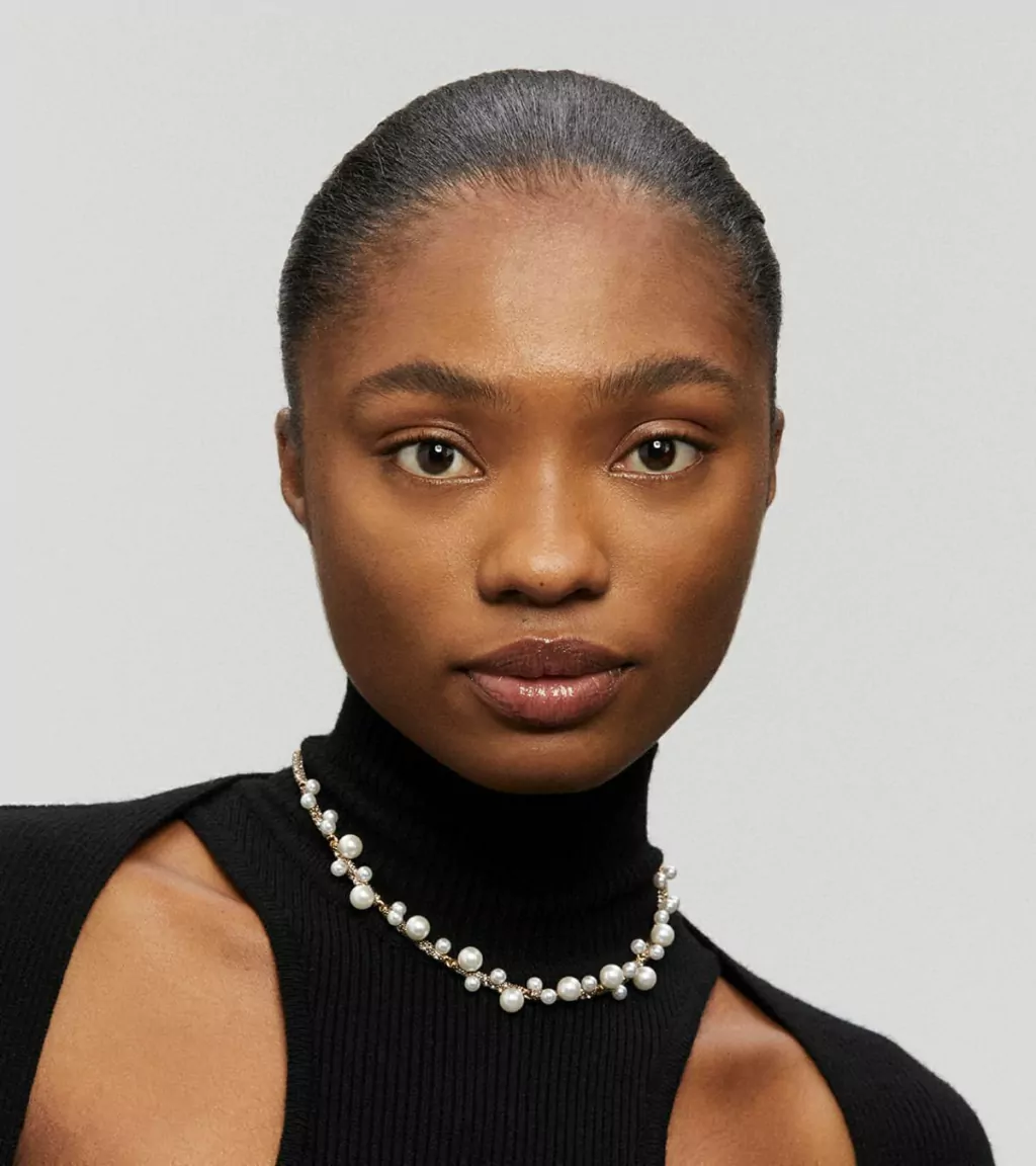 Coleção A-Logical - Fascínio A pérola é o elemento principal do drop Fascínio, trazendo seu lado clássico com uma releitura contemporânea. Os formatos das pérolas relembram os corais do fundo do mar, ao mesmo tempo que assemelham aos pés de jabuticabeira, idênticos pelas suas formas fartas, orgânicas e encantadoras. Para proporcionar um toque feminino e hipnotizante, as pérolas aparecem com acabamentos incrustrados em brincos, braceletes, colares e anéis. A Choker Strass e Pérolas Fascínio foi produzida artesanalmente, aplicando as técnicas da joalheria, no banho Ouro Vintage, com cristais cravejados manualmente.
