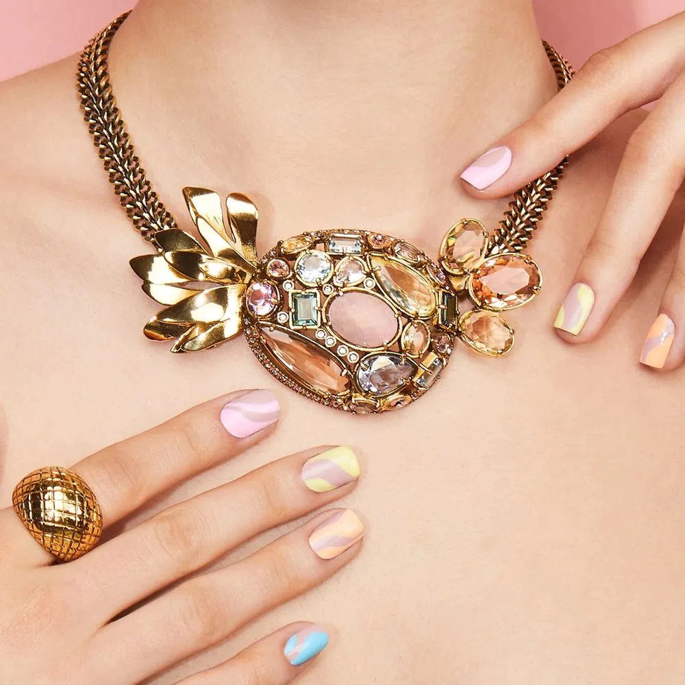 O encantador mix das pedras naturais jade facetada rodocrosita, ametista, ágata turmalina, mix florita, dos cristais light rose, cristal, light silk, silk, light azore, peridot , silver shade, vintage rose, jonquil, aquamarine e dos metais em banho ouro velho é o que dá forma às novas bijoux.