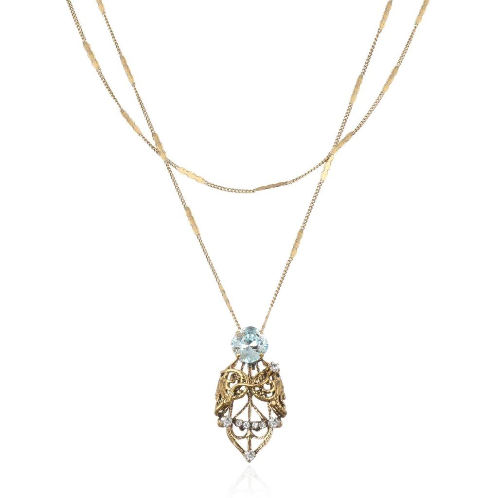 Colar Nossa Senhora Aparecida banhado em ouro vintage com cristaIs.