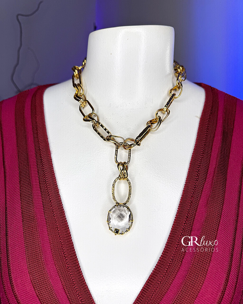 Colar da marca Camila Klein, coleção Gemma, banho no metal ouro velho com cristais tchecos e austríacos.