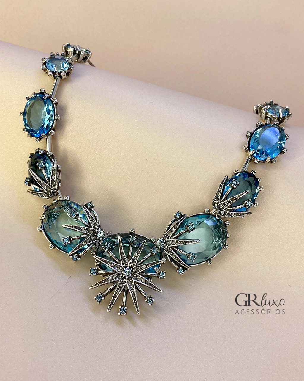 Composição: vários tipos de cristais e finalizado em metal em banho prata vintage.