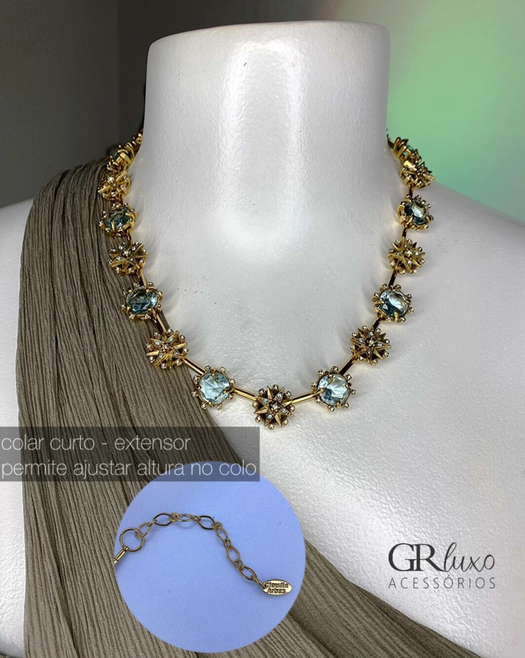 Composição: vários tipos de cristais e finalizado em metal em banho ouro vintage.