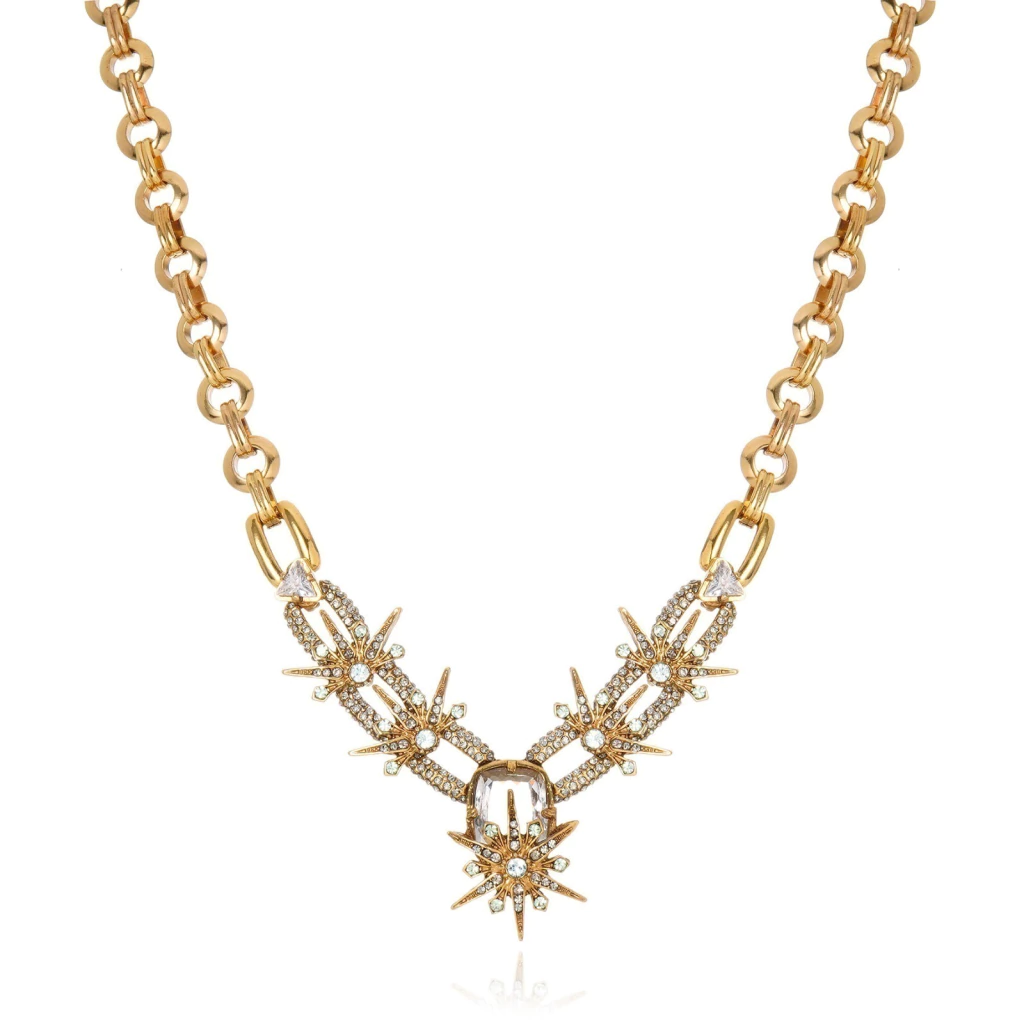 Composição: vários tipos de cristais e finalizado em metal em banho ouro vintage.