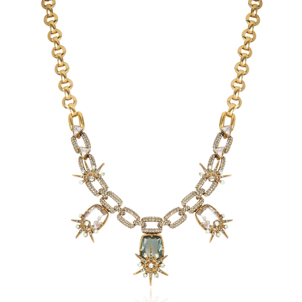 Composição: vários tipos de cristais e finalizado em metal em banho ouro vintage.