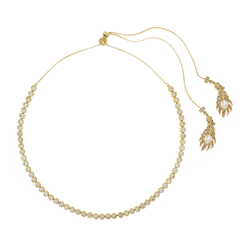 Os brincos e colares, com suas formas fluídas e leves, evocam o movimento das penas ao vento, enquanto os anéis trazem uma explosão de brilho, como se cada pedra fosse uma estrela a brilhar em seu próprio céu.