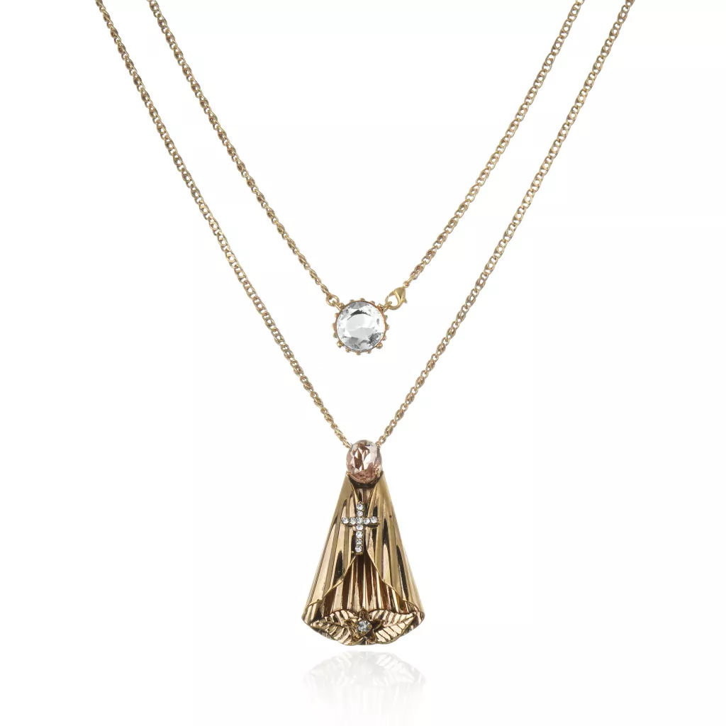 Colar produzido de forma artesanal com cristais em metal em banho ouro velho.