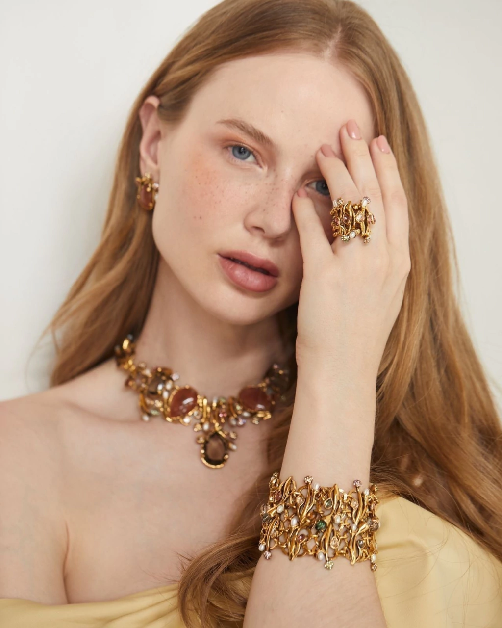 Camila Klein apresenta Broto, um novo e sofisticado capítulo da coleção Temperos de verão 2025. Com um design autoral, esta linha explora a beleza das tramas botânicas e pontos de cor, utilizando uma combinação de cristais coloridos, jade em diferentes tons, aragonitas, sodalitas e pérolas de água doce.