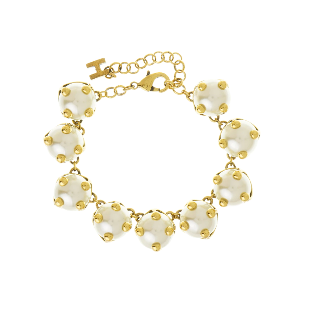 A pulseira pérola Collab A Herchcovitch foi produzido artesanalmente, aplicando as técnicas da joalheria, no banho Ouro Vintage, com pérola aplicada manualmente.